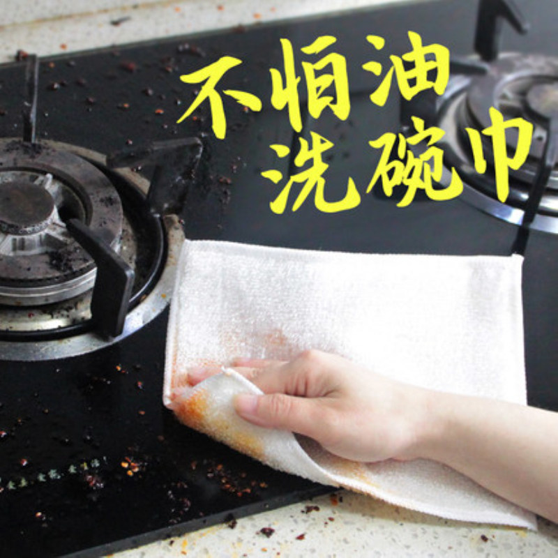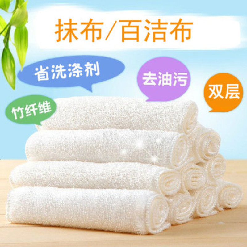 South Korean bamboo fiber dishwashing cloth not stained with oil double layer thickened water-absorbent dishcloth kitchen brush bowls towel rubbed tablecloths