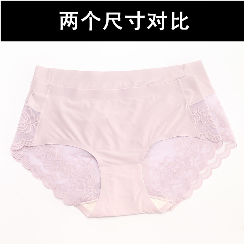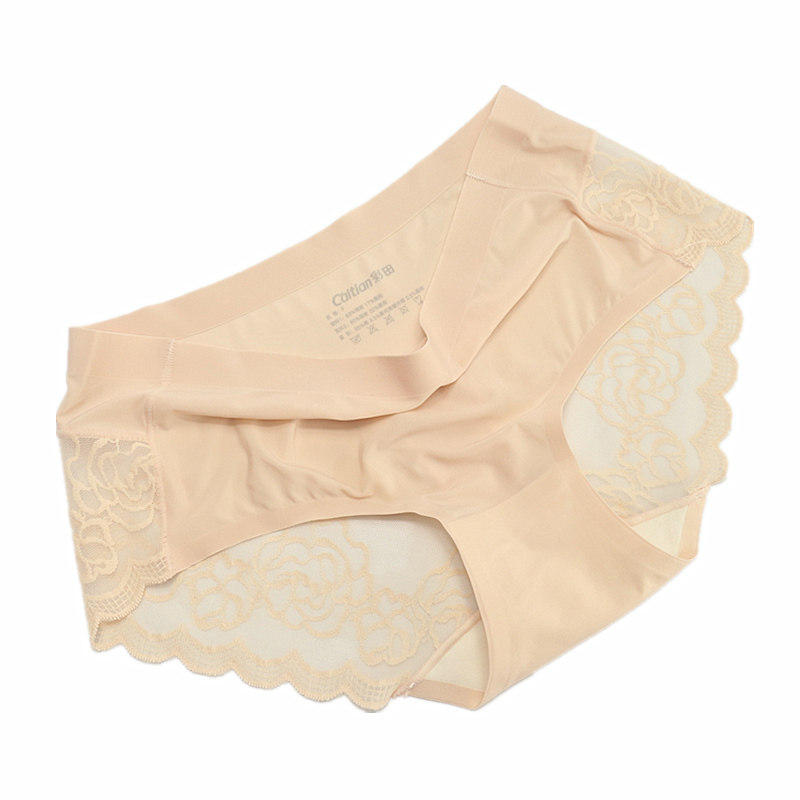 4 pieces of Caitian underwear women's one-piece ice silk seamless underwear sexy transparent lace edge bag hip mid-waist