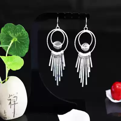 Simple ethnic style earrings personality exaggerated tassel retro temperament Net red super fairy long version earrings female Miao Dong