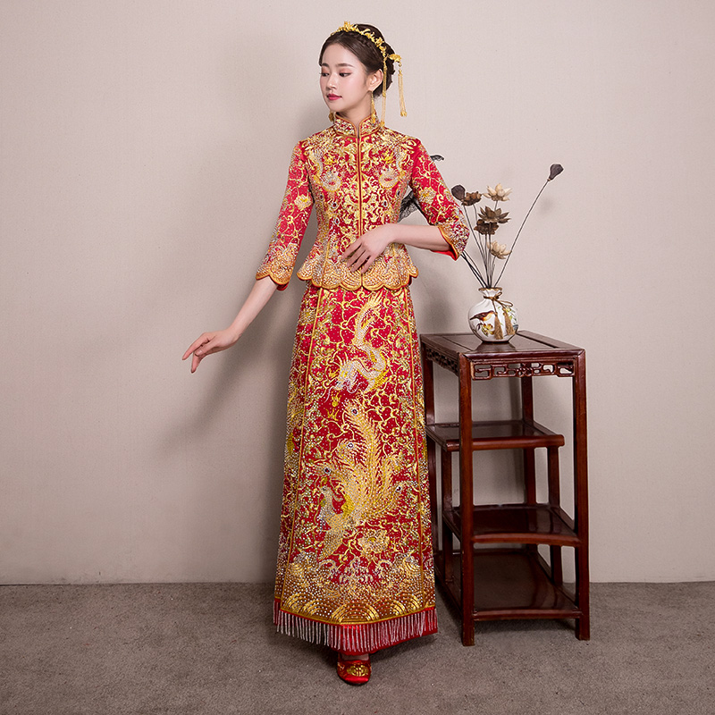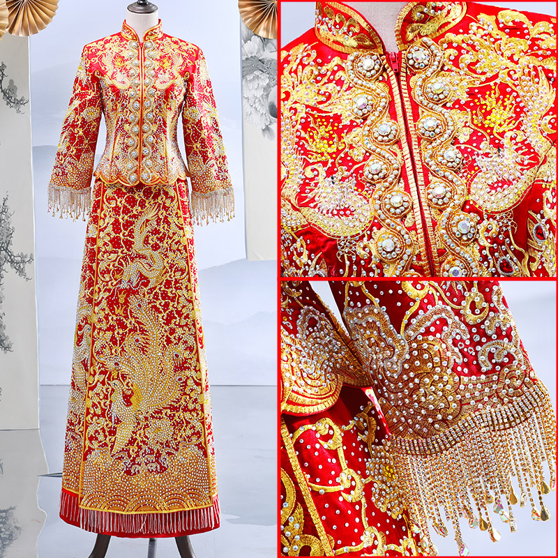 Dragon phoenix hanging show Wo dress bride 2021 new ancient dress wedding dress Chinese wedding toast dress Chinese style show and female