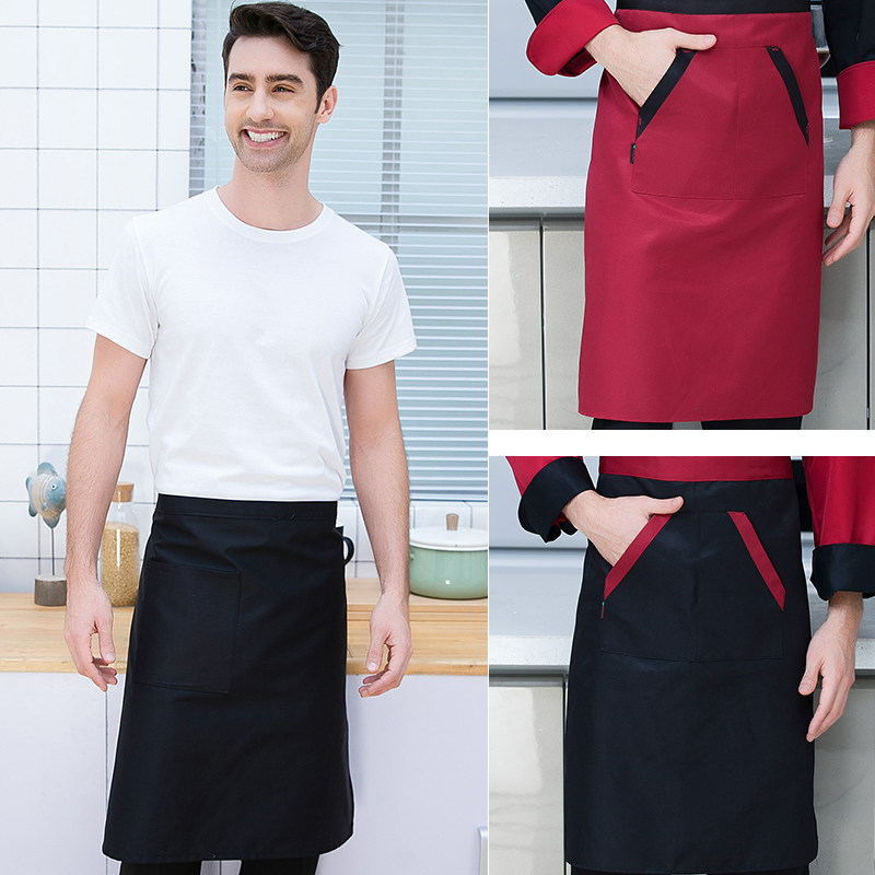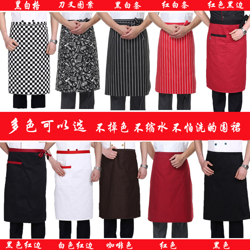 black-and-white striped black and white red side white red side apron red white bar chilli pattern pure red pure coffee red black side knife fork cutlery coffee bar pure white red black edge double pocket black red side double pocket big stripe