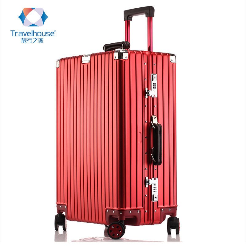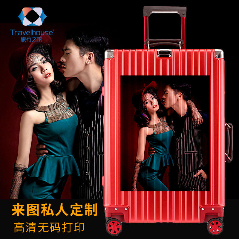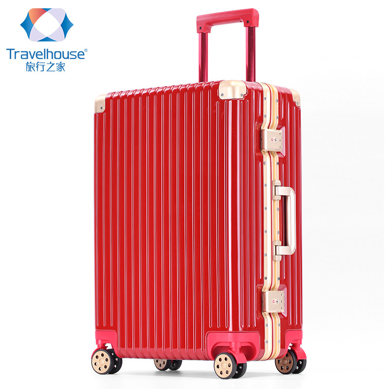 Travel home red trolley case wedding box all aluminum magnesium alloy universal wheel wedding suitcase festive travel bag