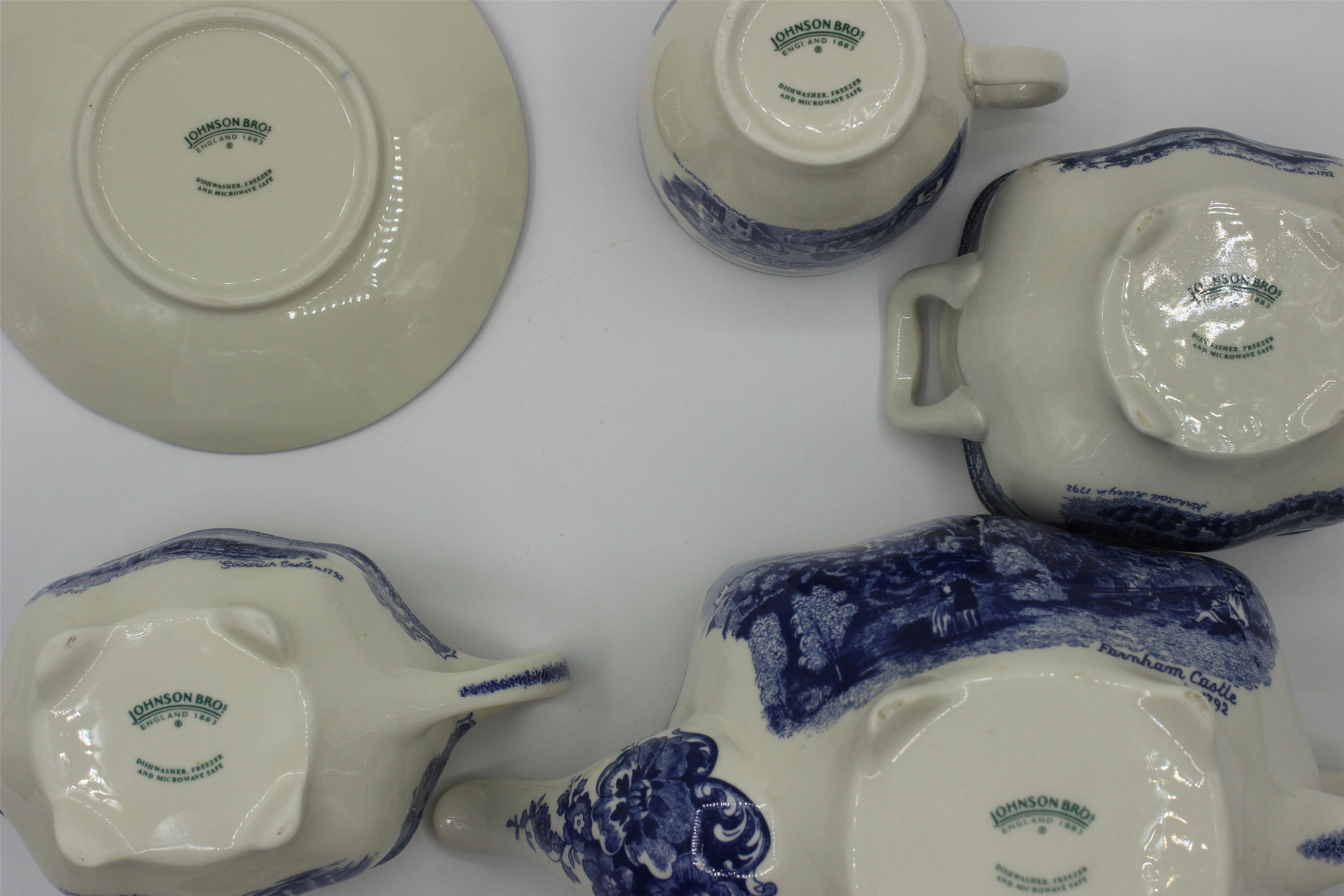 Foreign trade Original single Johnson Brothers Blue Guburg Castle Series teapot porcelain suit Sugar cylinders Milk Vat Coffee Cup