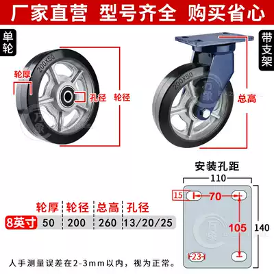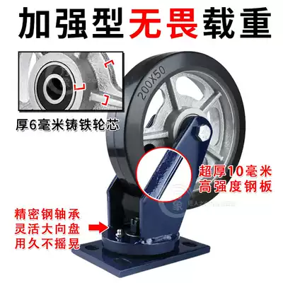 Industrial super heavy caster rubber wheel 8 inch flat hand push truck pulley silent belt brake universal wheel