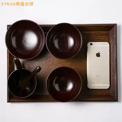 Japan imported children's tableware wakacho wakacho chestnut 7-piece set bowl, cup, spoon, fork, tray, tableware set
