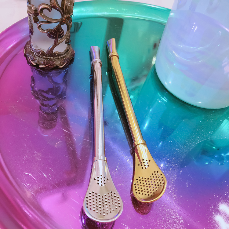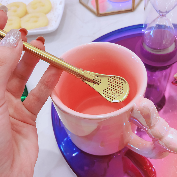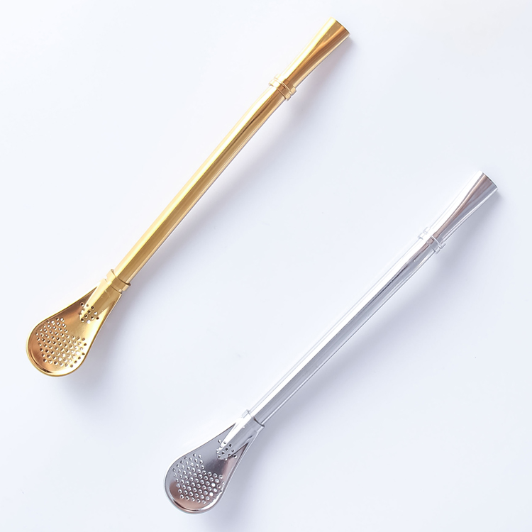 ins net red 304 stainless steel straw spoon dual-purpose coffee stirring spoon mate tea spoon flower tea residue filter drinking tube