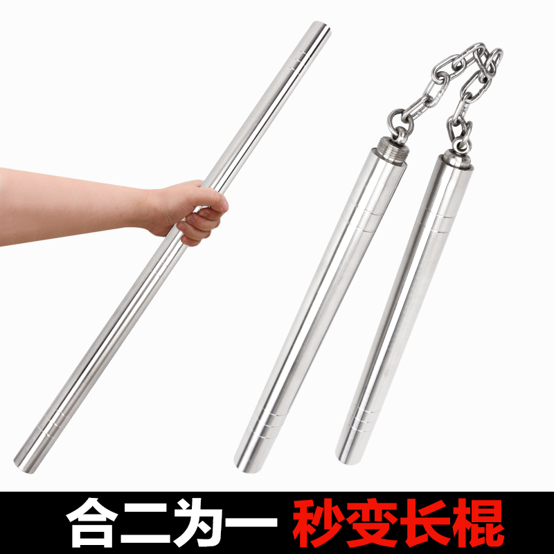 Nunchaku two-in-one dual-use combat stainless steel heavy stick self-defense training Taekwondo can be spliced nunchaku