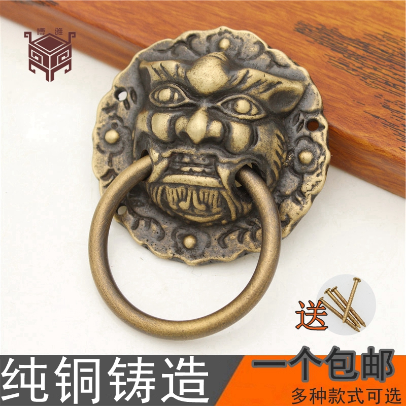 Chinese antique door pure copper accessories small lion head tiger head handle drawer cabinet door pull ring animal head door ring handle