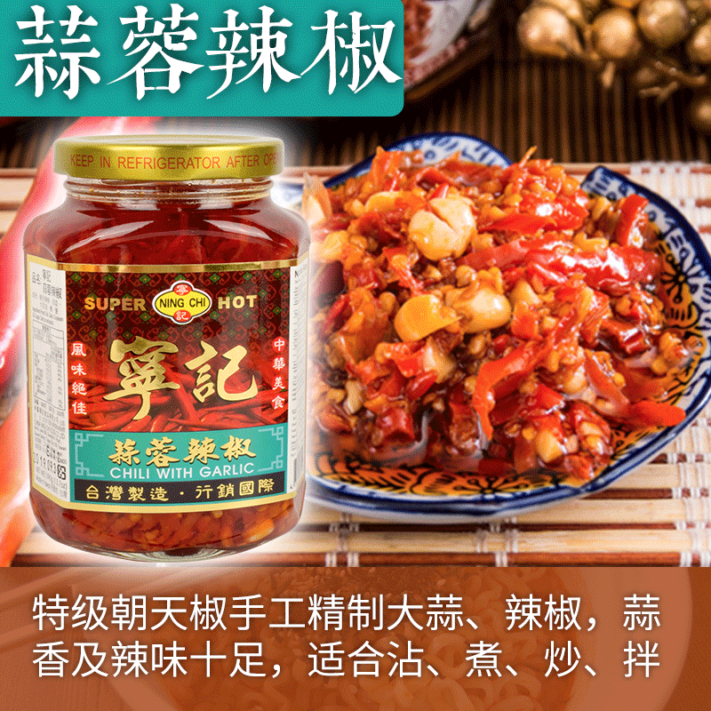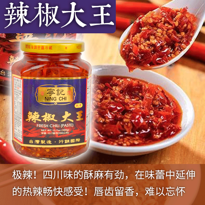 Taiwan imported Ningji chili sauce 390g spicy watercress chili king golden hook Chaotian pepper a can