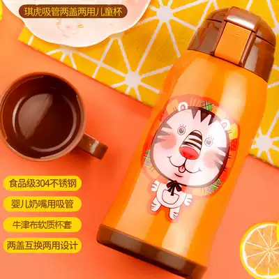 Qihu stainless steel Children's thermos cup dual-purpose with suction tube Cup Zixia kindergarten anti-drop Primary School water bottle lettering