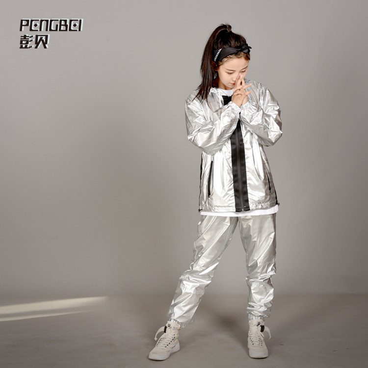 Bright Face Silver Sports Suit Bboy Hip Hop Casual Lovers Dress Class Street Dance dance Team Custom 529