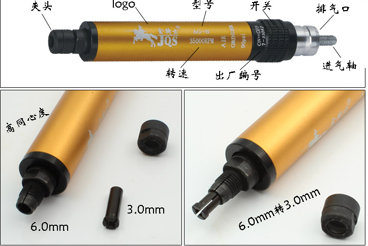 Gold Rider Small High Speed Pneumatic Engraving Mill AG-6 Wind Mill Pen Wind Mill 6mm Gas Mill Pen Pneumatic Grinder-Taobao