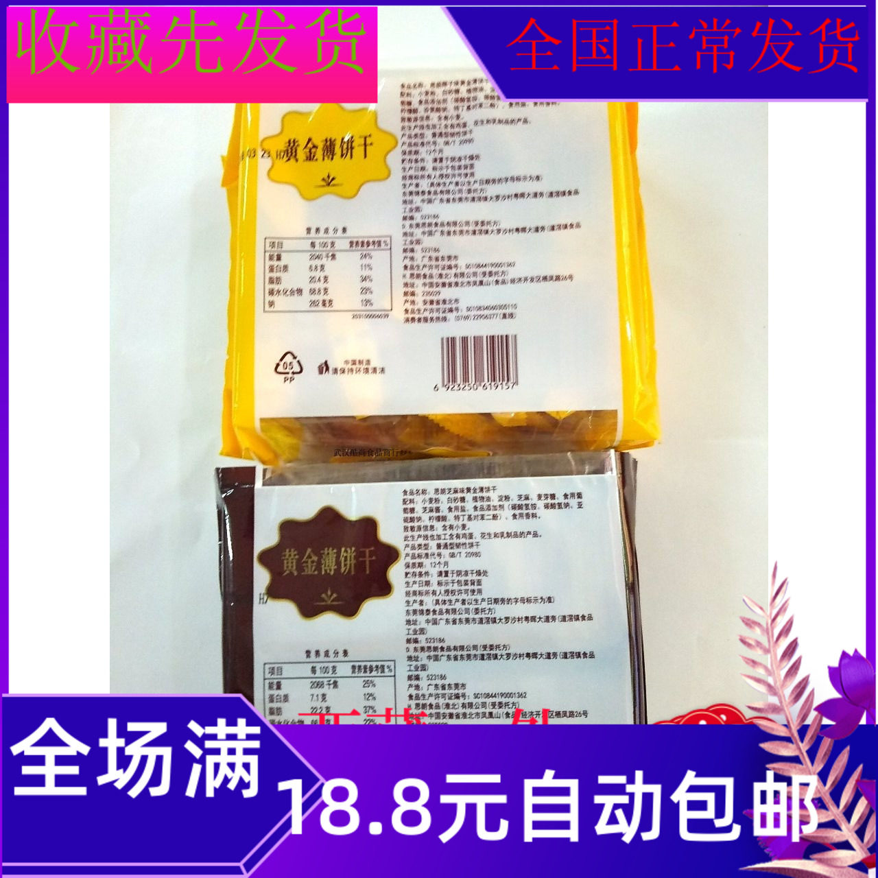 285g Thronand gold thin biscuit Sesame Flavor Coconut Taste breakfast bagged Delicious Healthy Food Snacks Batch