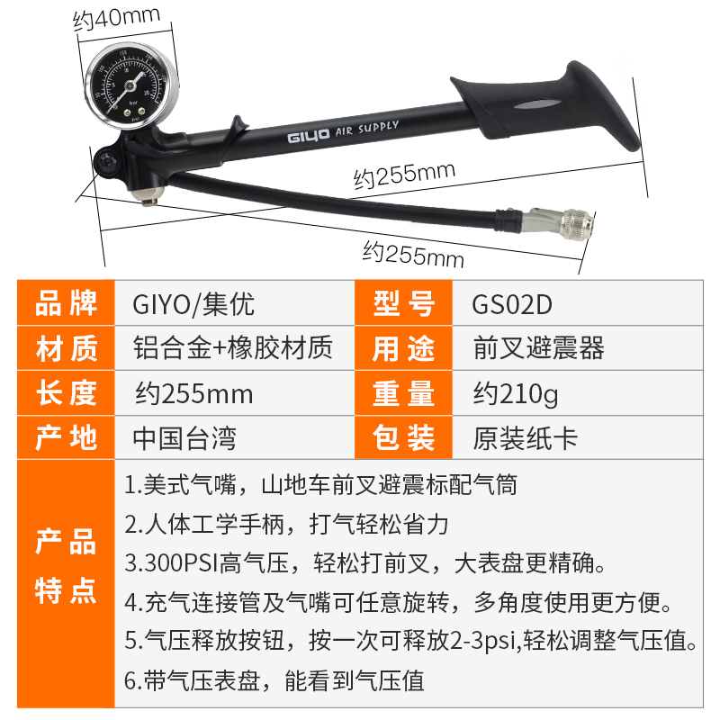 Taiwan GIYO mountain bike shock absorber front fork high pressure pump GS-02D front fork pump bicycle
