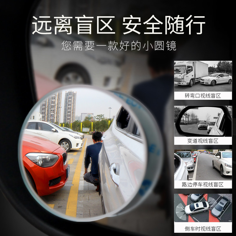 Car rear mirror small round mirror reversing blind spot mirror 360 degrees without edge wide angle adjustable high-definition auxiliary reflective blind area