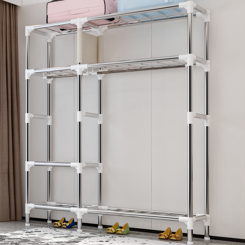 Common wardrobe thickened steel pipe reinforced thickened assembly Double simple household bedroom storage wardrobe Rental room wardrobe