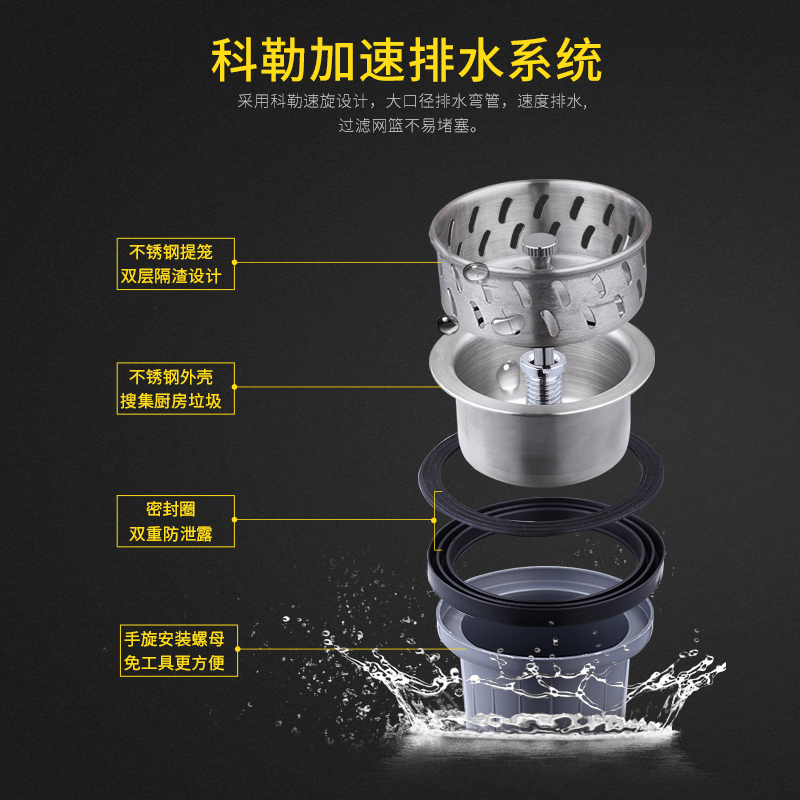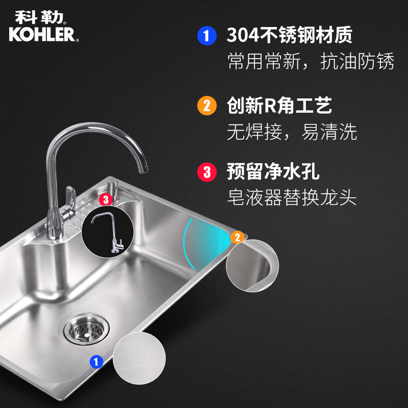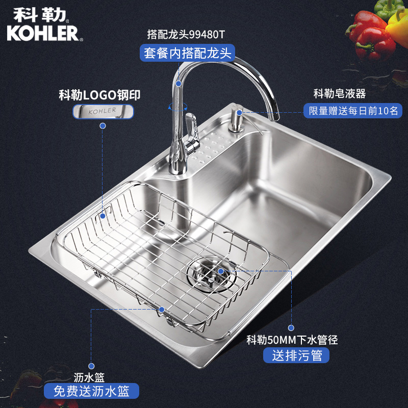 Kohler kitchen 304 stainless steel sink table basin sink sink large single tank flagship 23684