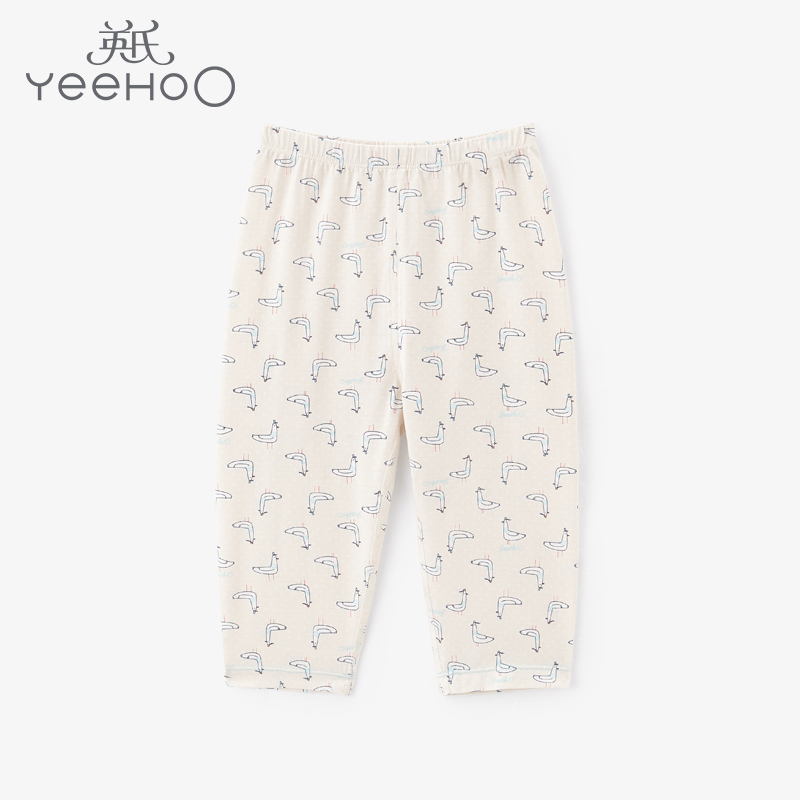 Ying's children's pajamas men's and women's pure cotton elastic waist thin leggings Smiley pants 184A0956