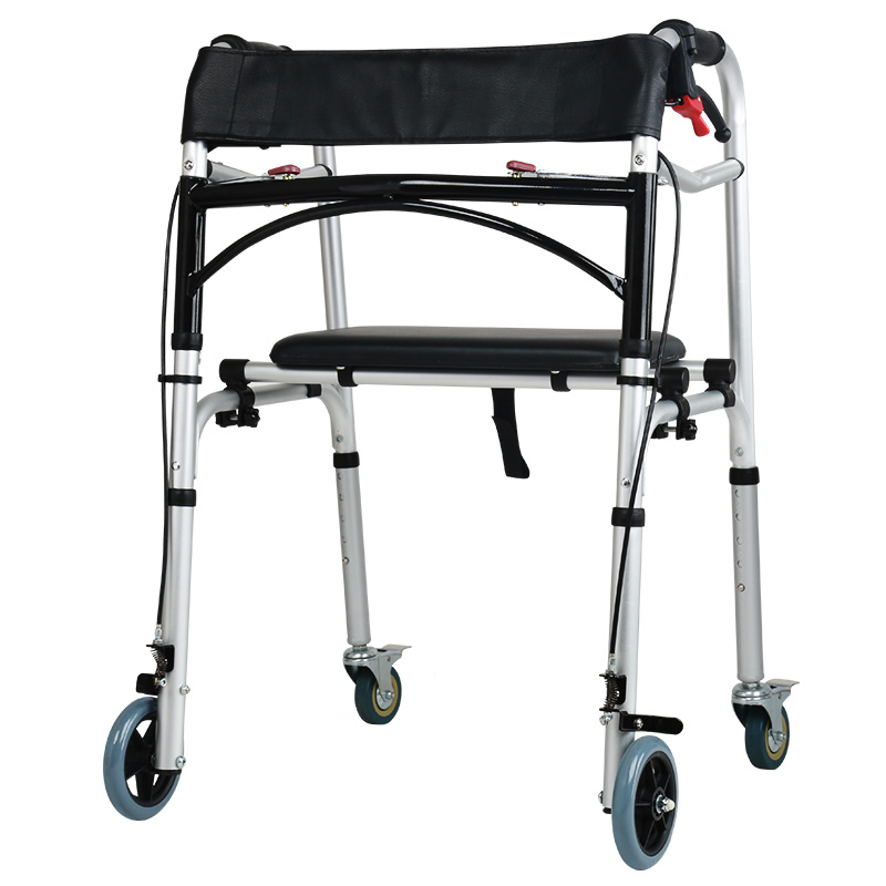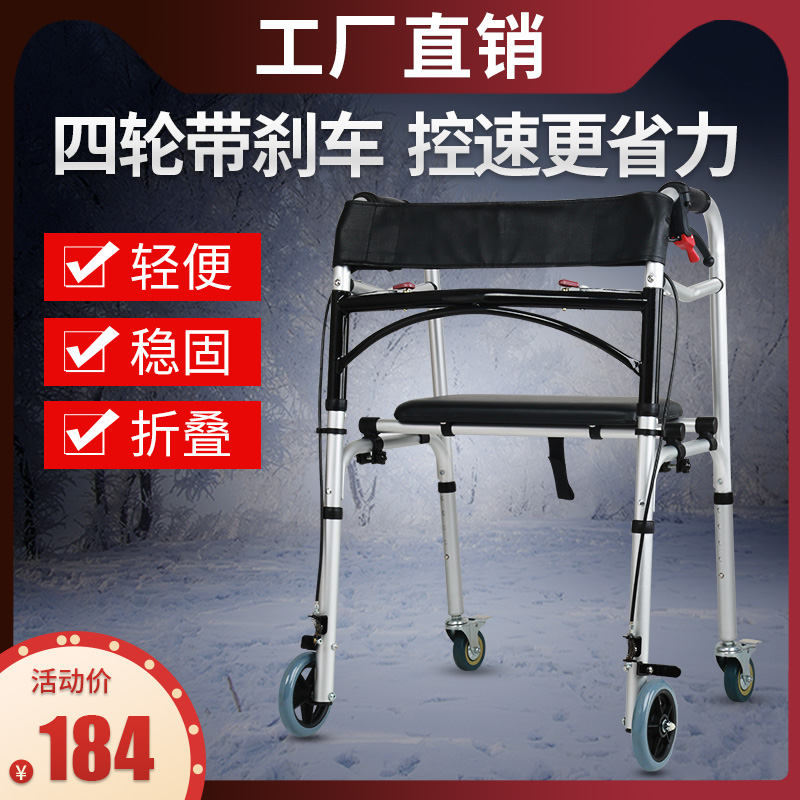 Walker with wheel with seat four-foot elderly walker assisted walker lower limb training light folding and crummy