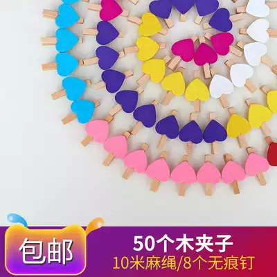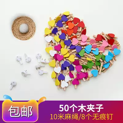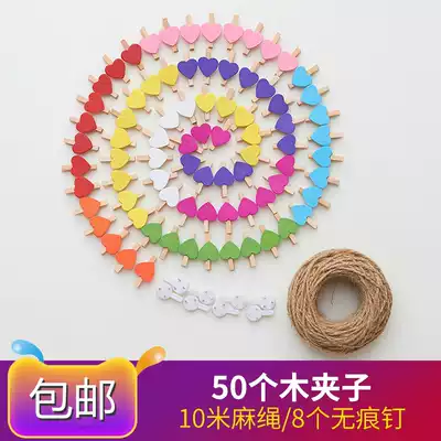 ins photo clip Wooden hemp rope color love clip Wedding small wooden clip Photo small clip Photo clip Photo wall