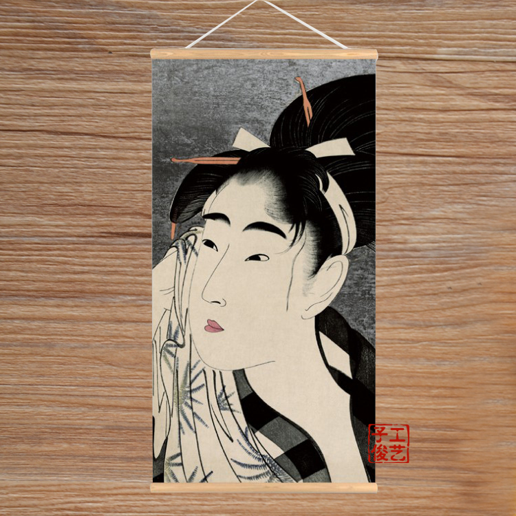 Japanese floating painting figures Decorative Painting Living Room Hotel Dining Room Hanging Painting Wall Painting Scroll Shaft Painting of Kanagawa Waves Ri