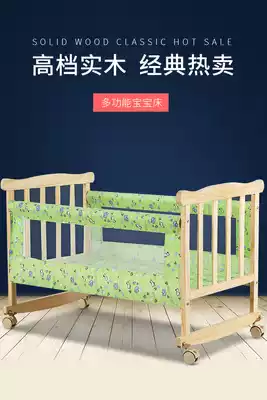 Meng Bao Le solid wood crib environmental protection non-lacquered newborn baby bed shaker basket can be spliced big bed