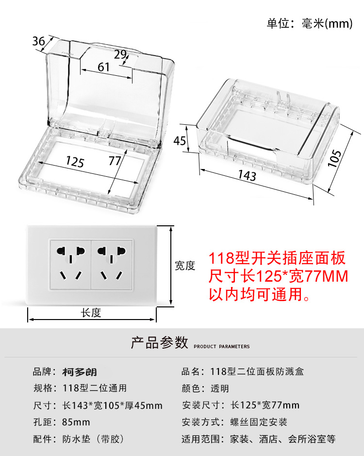 Type 118 small switch bathroom six-hole power socket waterproof box two bathroom splash box protective cover