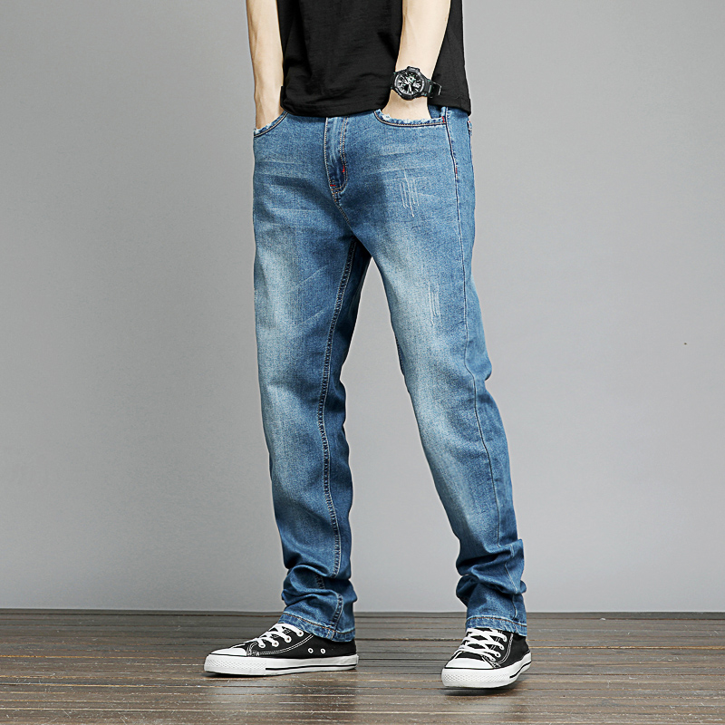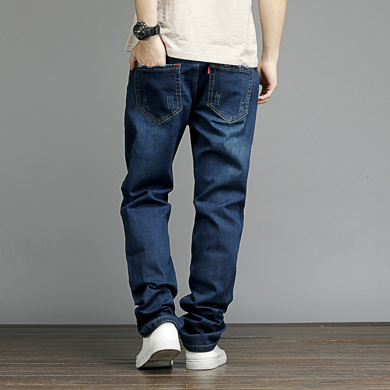 Elastic fattening guy pants male gats up and down for size spring autumn trend pants loose straight cylinder Korean version Fat man jeans