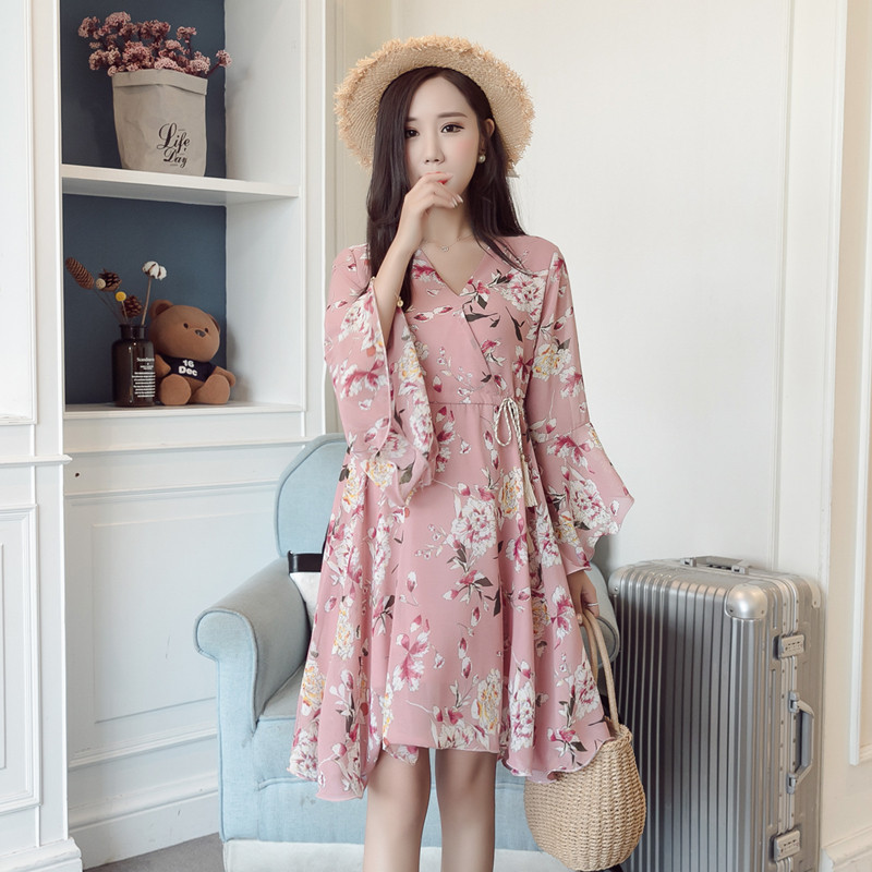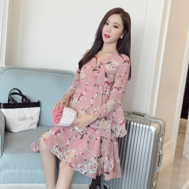 Pregnant women skirt summer fashion model 2021 new 18-25 years old spring dress pregnancy 3-9 months chiffon dress