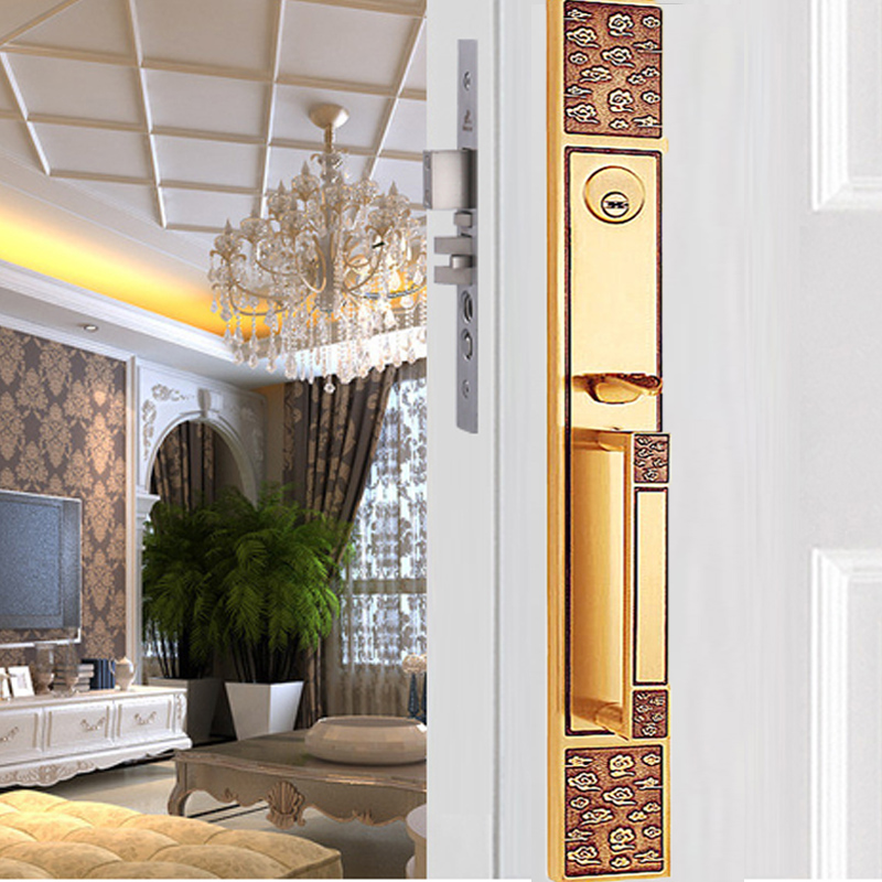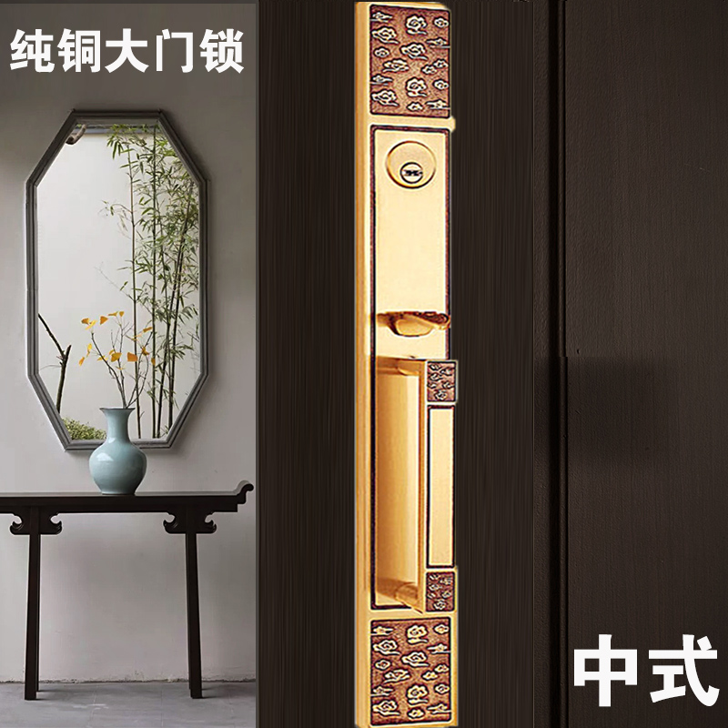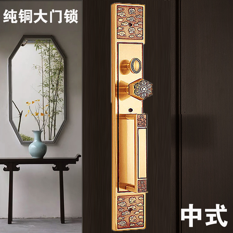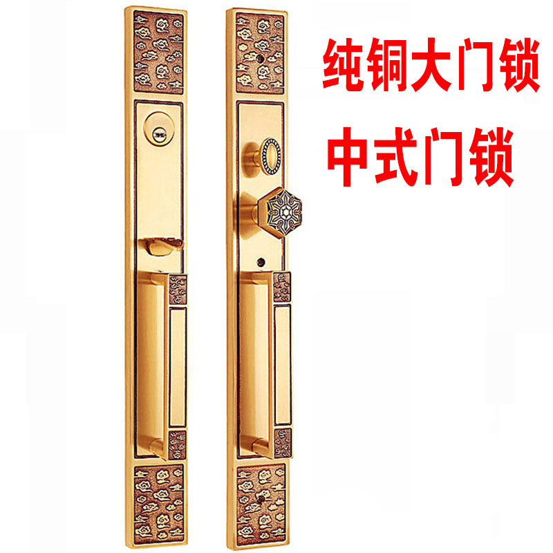 Chinese pure copper villa with large door lock full copper antique solid wood double door large handle lock into the door American door American lock
