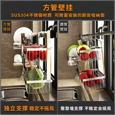 304 stainless steel kitchen rack wall-mounted non-hole drain bowl holder knife holder supplies storage rack household