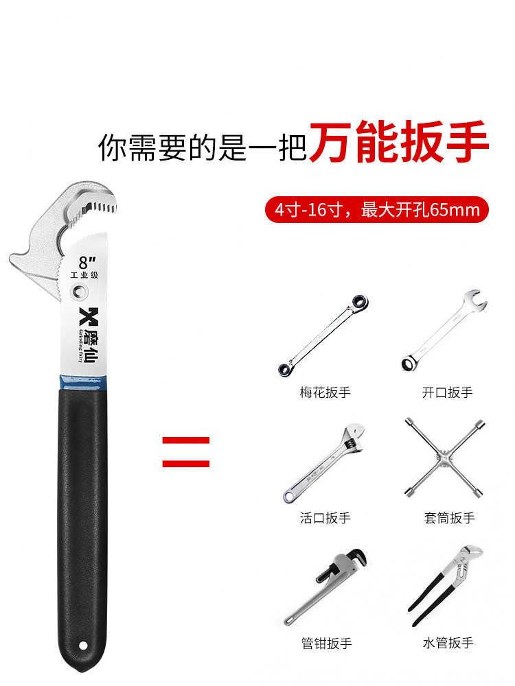 Mo Xian multi-function quick opening wrench German live pipe wrench Labor-saving movable wrench Household adjustable wrench