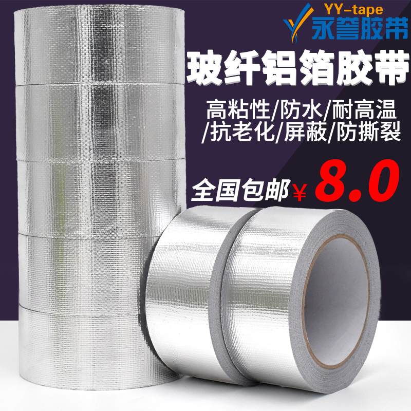 Glass fiber cloth aluminum foil adhesive tape flame-retardant high temperature resistant waterproof hot water pipe insulated sealing tear-proof and radiation-proof aluminum adhesive tape