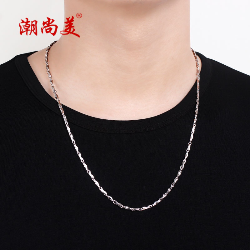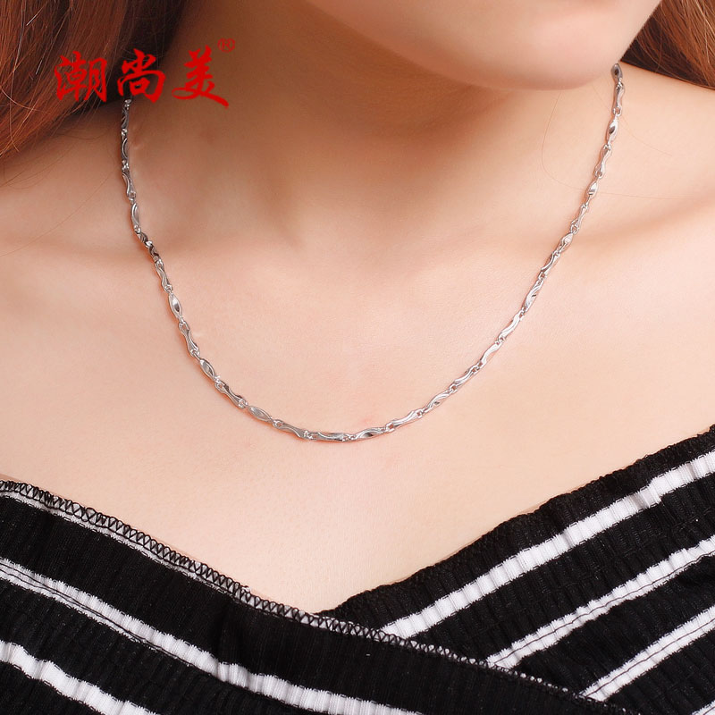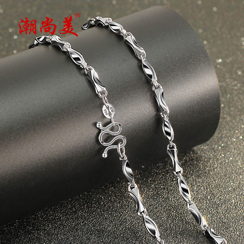 Chao Wanxin Bao Chain Pure Silver Necklace Couple Men and Women Love Silver Chain Unpendant Cross Chain Personality Engraved