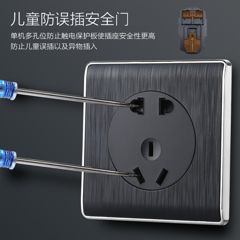 Galyton Wall Light Point Switch 86 Type Concealed Home Switch TV Computer Socket C5 Black Dot Switch