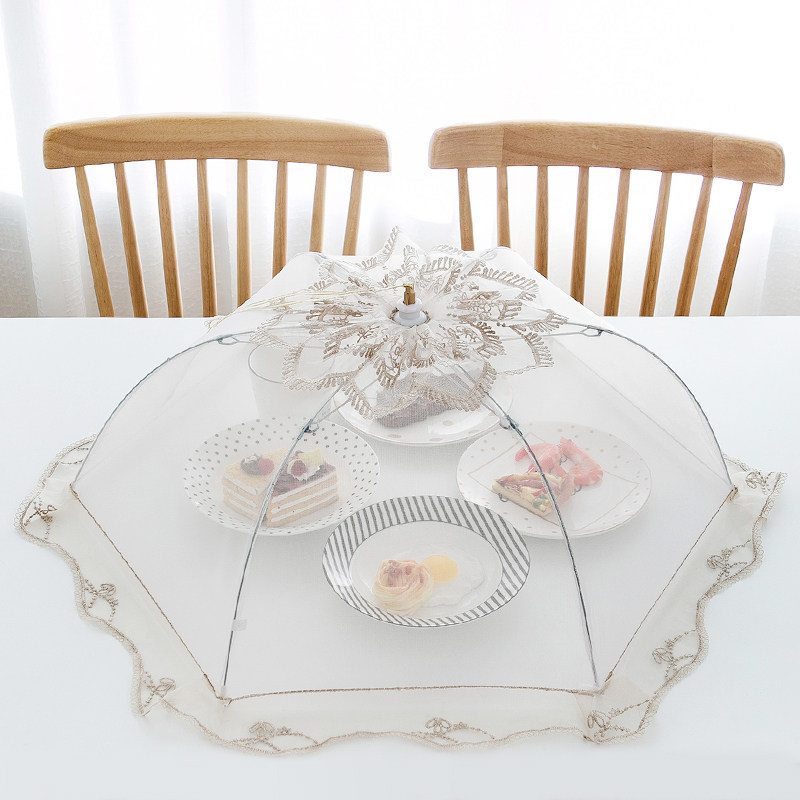 Meal cover table cover umbrella foldable table cover food anti-fly rectangular household cover lace large dish cover