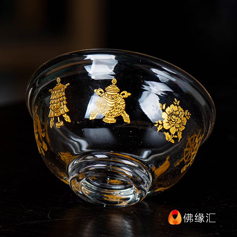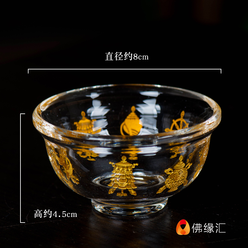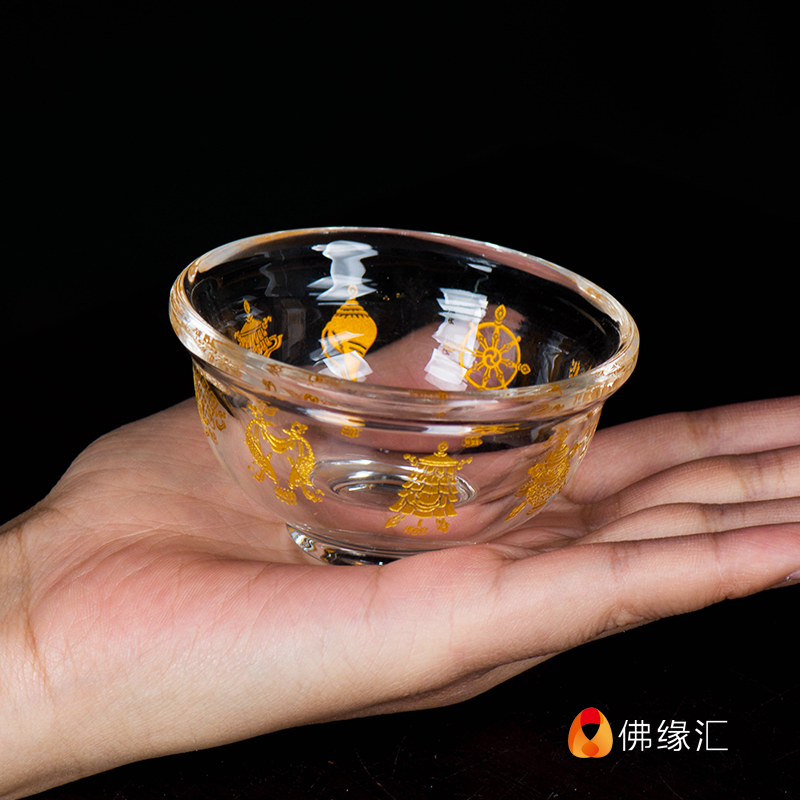 Crystal water supply bowl Buddha front water supply cup water supply cup for Buddha cup eight auspicious depiction gold holy water cup seven 8cm