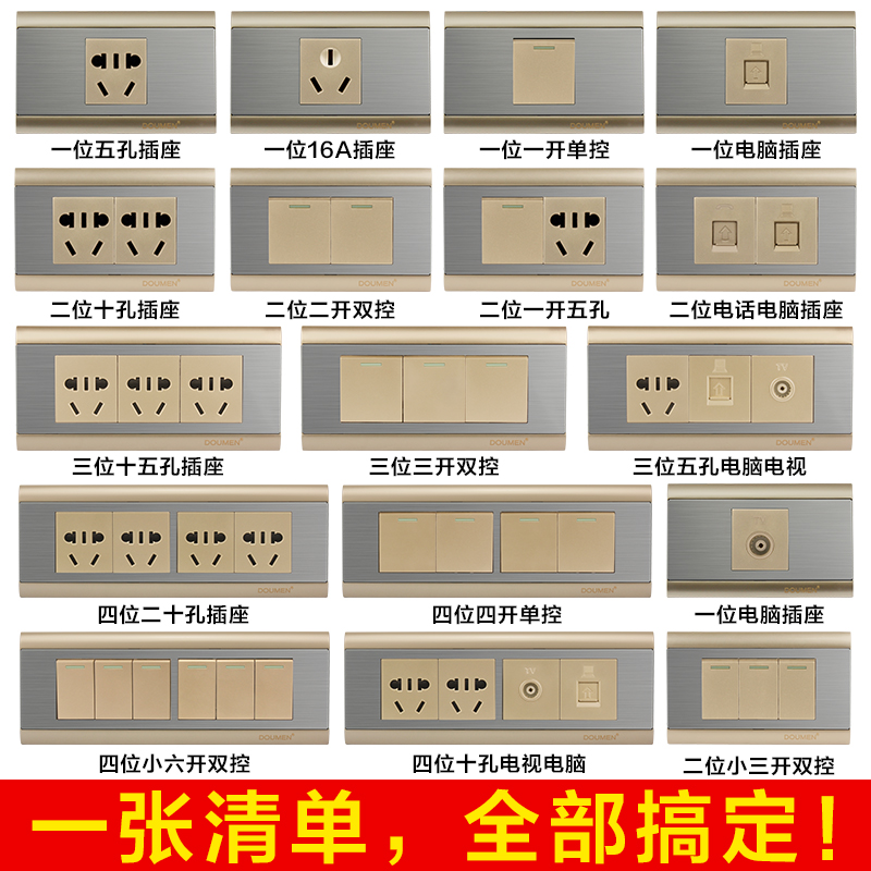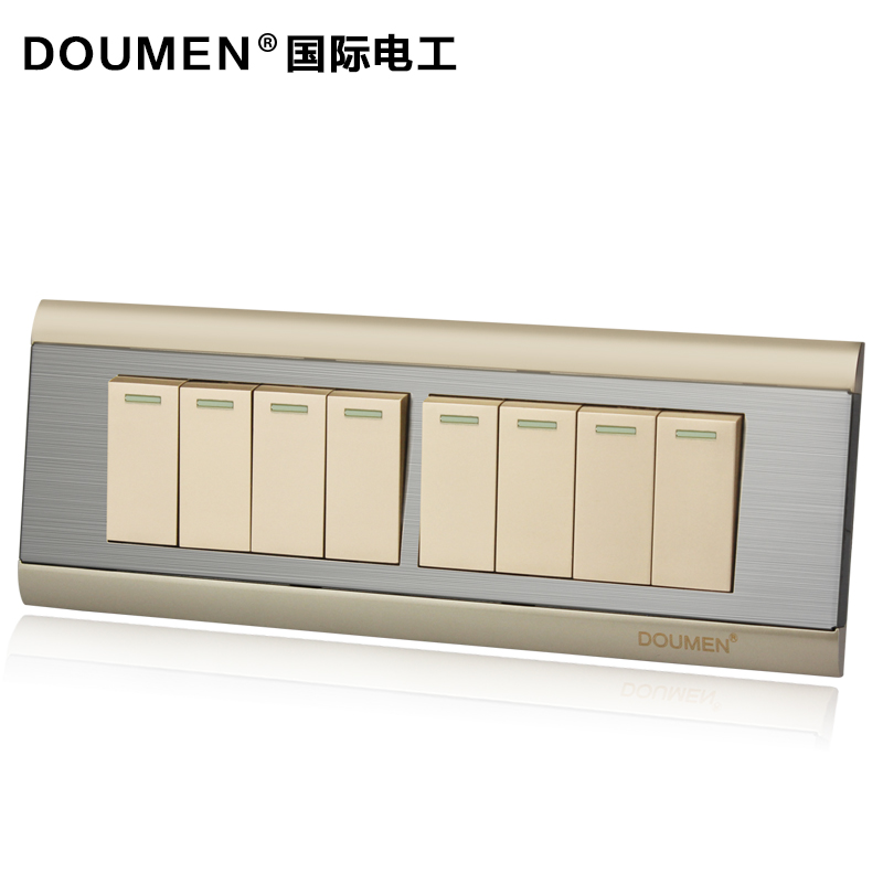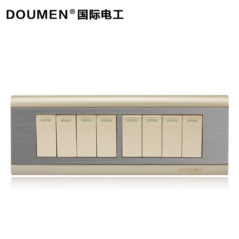 International electrician's four-eight-open double-cut 118 stainless steel wire drawing combined switch socket Champagne gold
