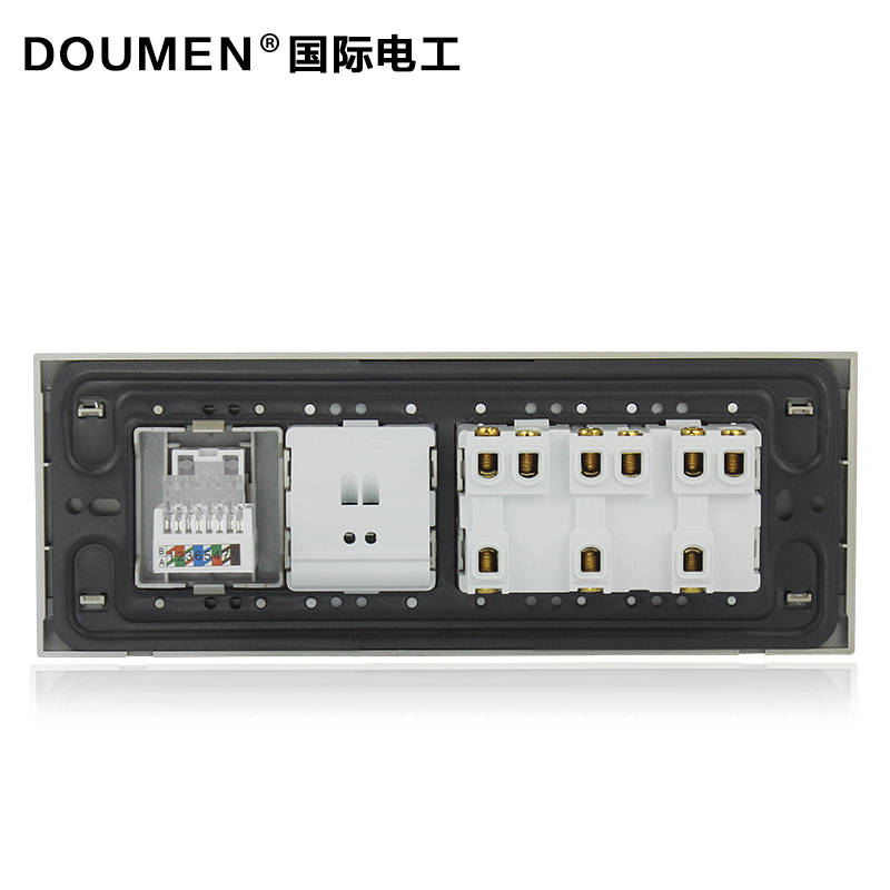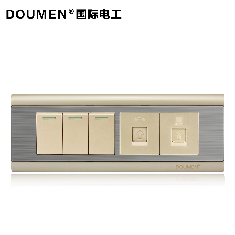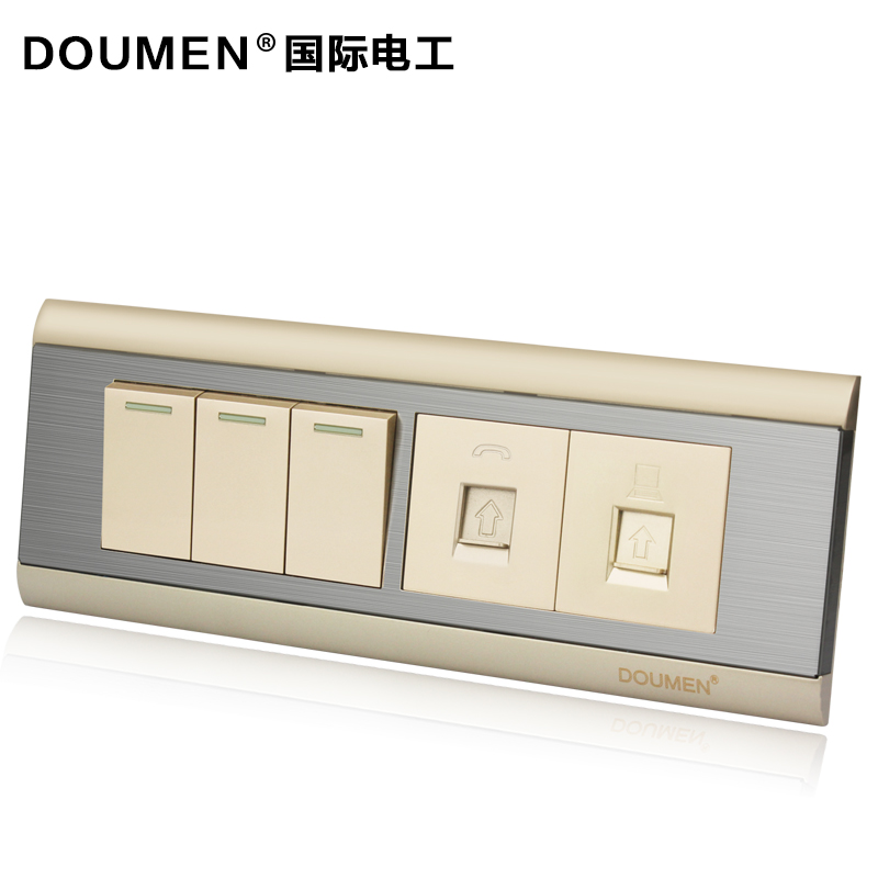 International electrician open dual-control telephone with computer network cable 118 stainless steel wire drawing switch socket panel fragrant gold