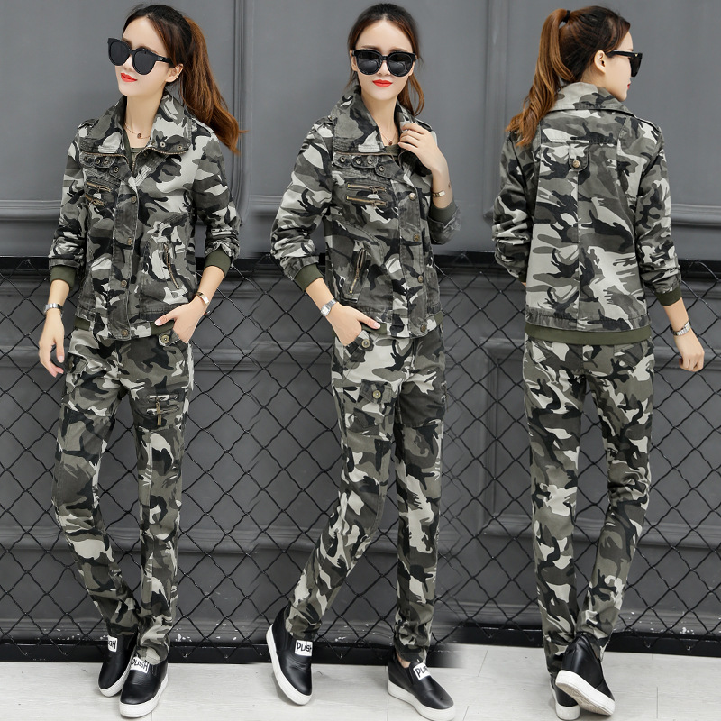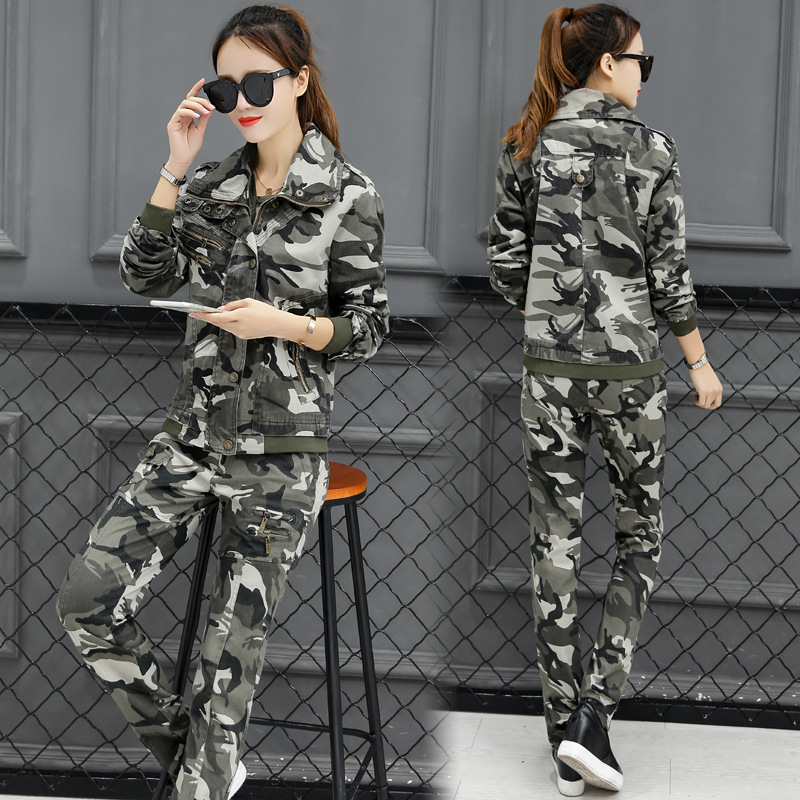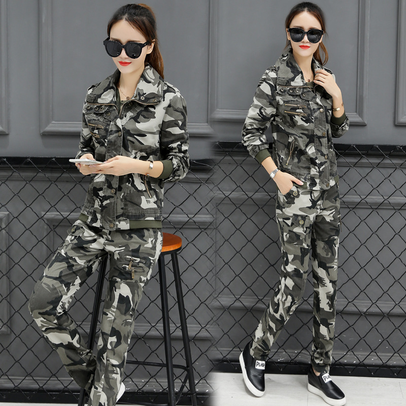 Camouflage suit female two-piece coat trousers repair slim cotton autumn new product clothing