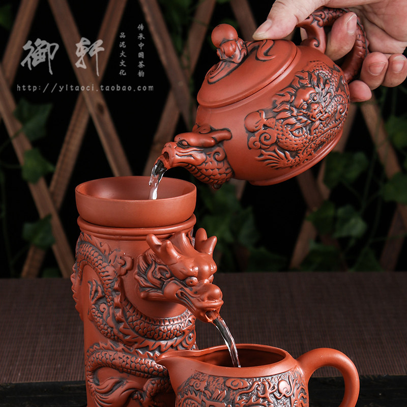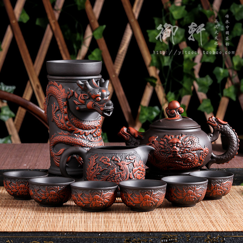 Purple Sand Gongfu tea set Household lazy antique double Dragon water tea set Ceramic flower tea pot Tea cup set