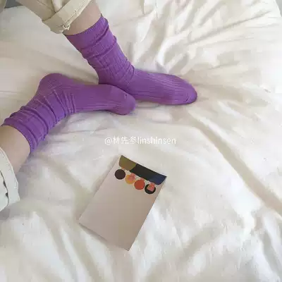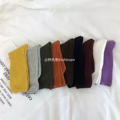 Lin Xianchan spring and autumn new Japanese bubble socks retro mid-tube women's socks solid color vertical striped socks women