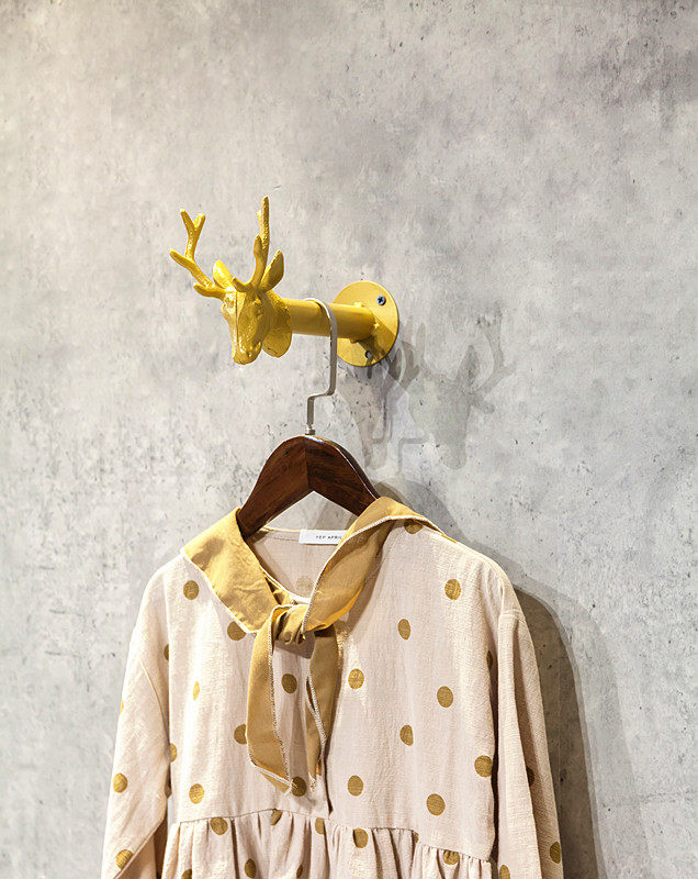 Clothing store golden point hanging on the wall single hook is hanging hanger display rack Deer head hook wall hanging clothes rack hanging clothes hook