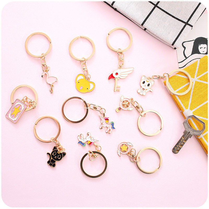 Key buckle Female Stainless Steel Pendant Korea Cartoon Cute Art Little Fresh Personality Creative Metal Key Ring