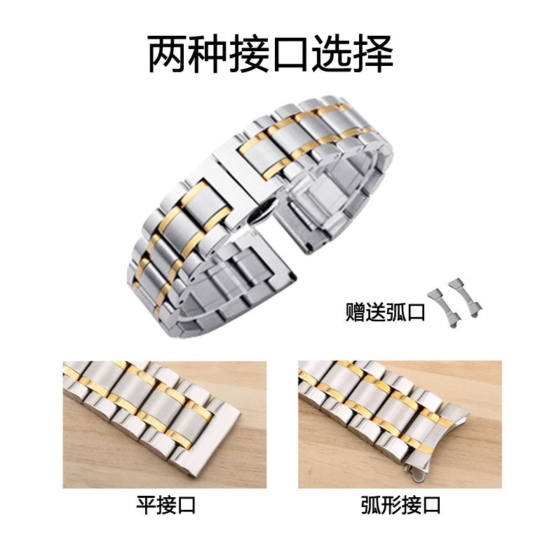 Multi-function butterfly buckle three solid steel strap Elbow and flat head interchangeable stainless steel dual-use steel strap
