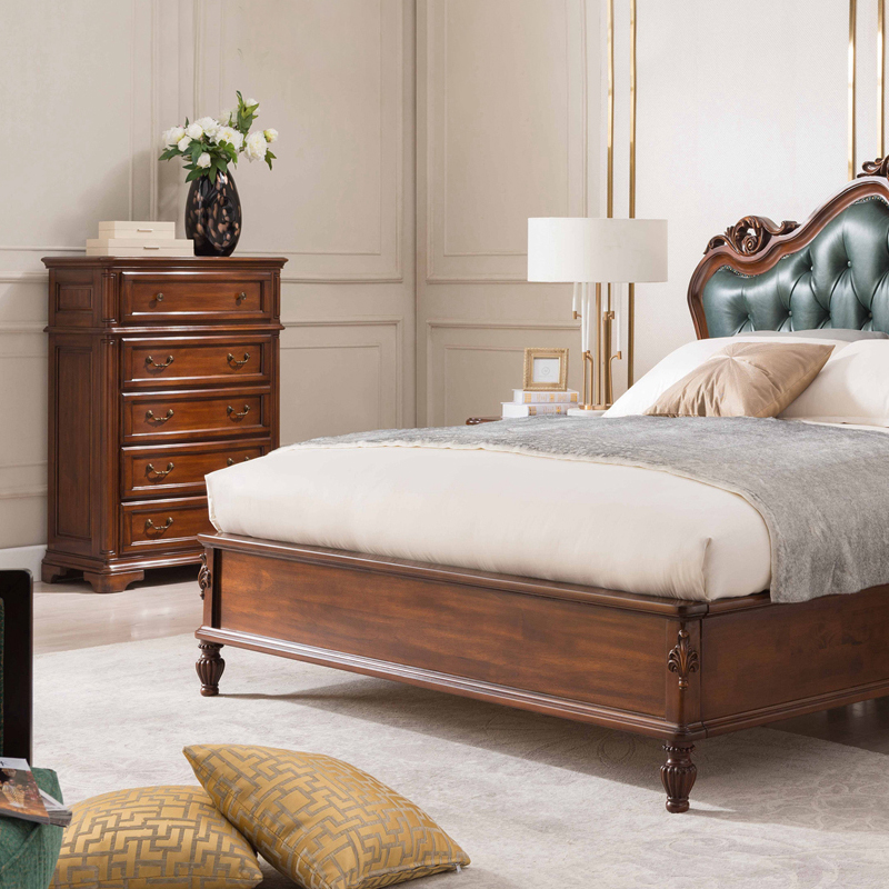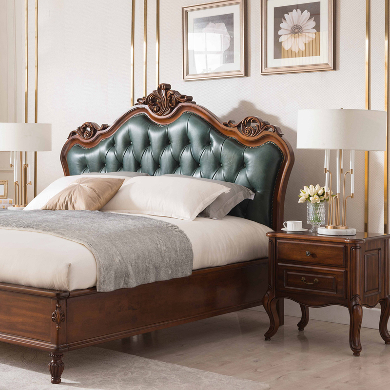 American leather full solid wood bed European simple European luxury master bed wedding bed retro high-end villa hotel double bed
