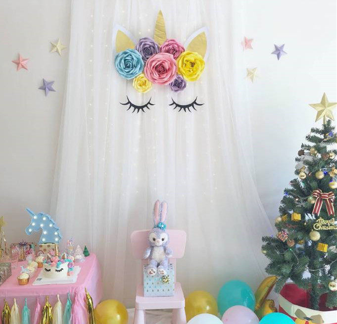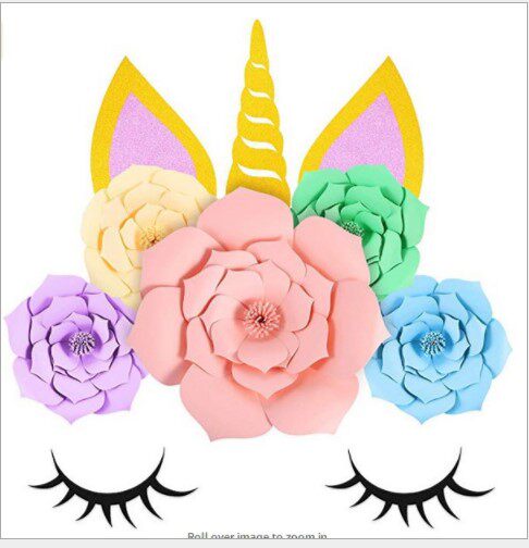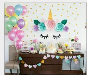 Cat color with unicorn color tassel 40 as shown in the picture with banner Cat color with felt 30CM a 20CM two unicorns 8-piece set of paper fan flowers glitter 30