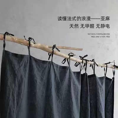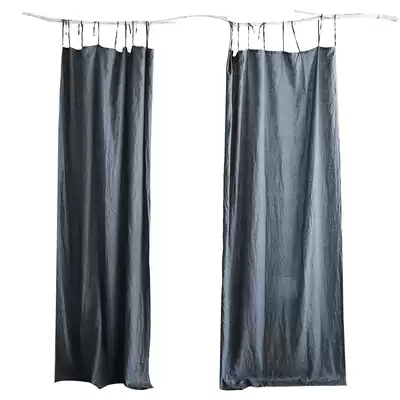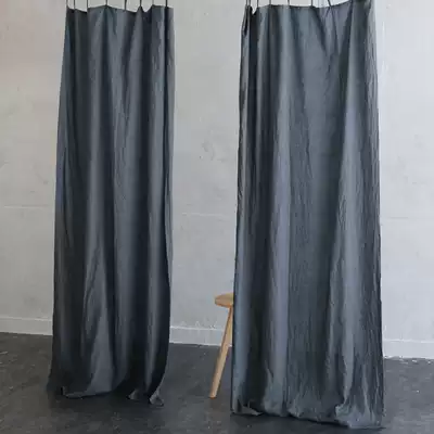 Original custom Crow cyan linen semi-blackout curtains heavy water washed linen living room balcony floor-to-ceiling window curtains
