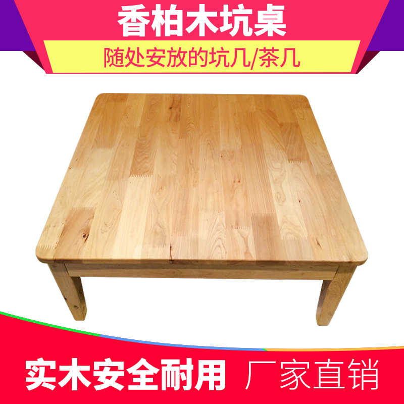 60*60cm Cypress Kang table Square solid wood small wine table Kang several pure cypress low table Tatami table Coffee table