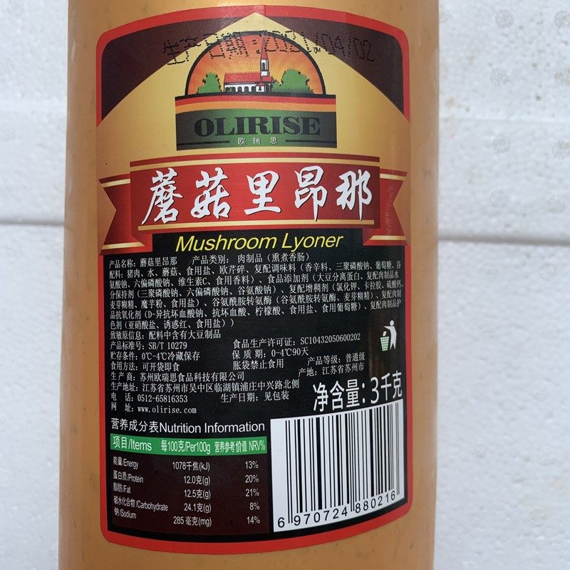 Oris Mushroom Lyoner Mushroom Lyoner German pure meat to make cold cut sausage 3kg green pepper sausage